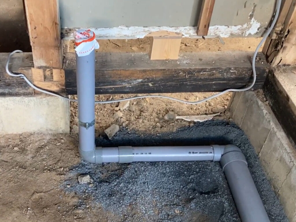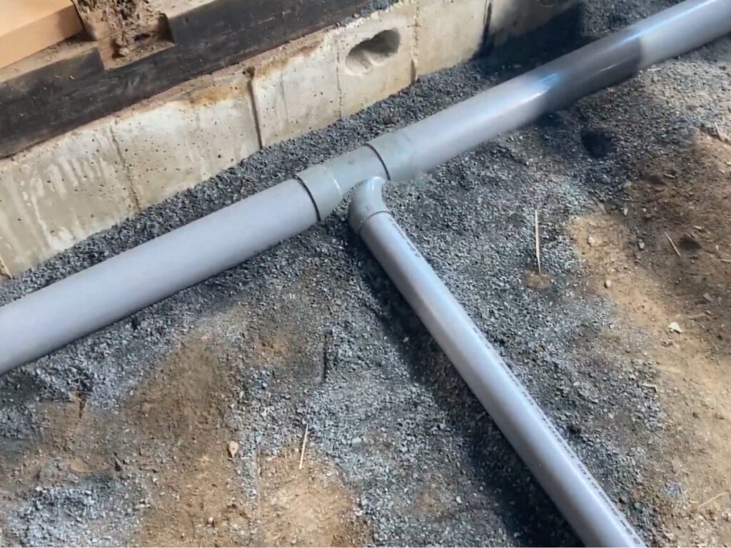北側(浴室側)に便器を設置するため、それに合わせて配管を設置します。