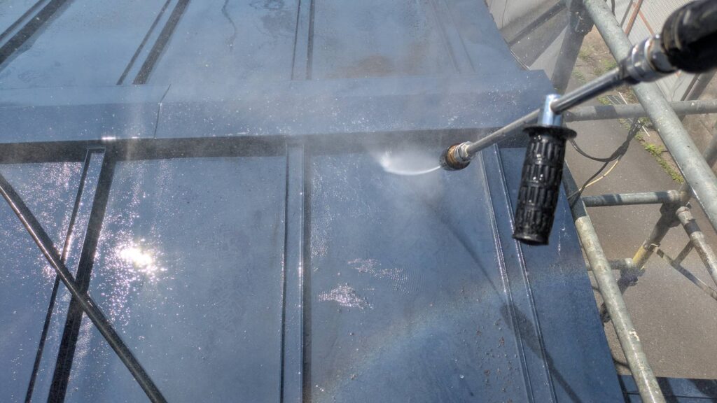 初めに新しく塗装する塗料の接着性を高めるためにも洗浄をしっかり行ってまいります🚿