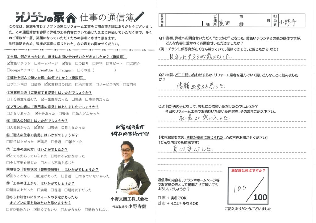 Q3.何が決め手となって、弊社にご依頼いただけたのでしょうか?今回のリフォーム工事でお感じいただいた内容を、そのままご記入下さい。