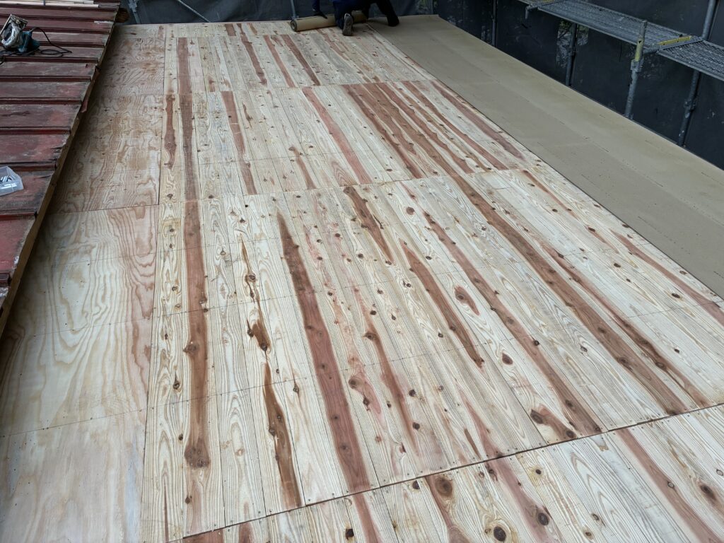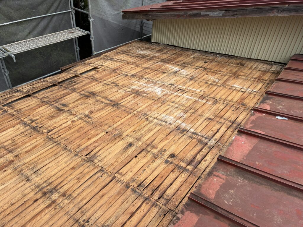 今回雨漏りしている部分以外も屋根のサビが進行して穴があいている状況だったため、傷んでいる下地も含めて屋根の葺き替えをしていただきました。