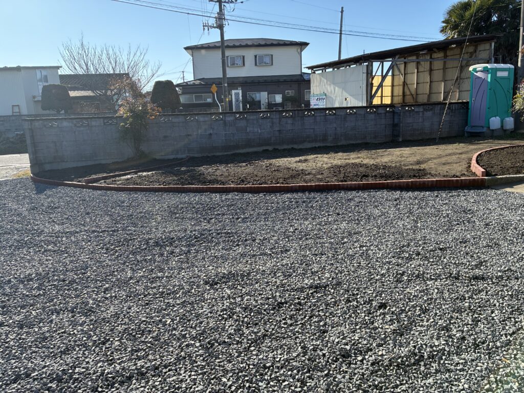 今回はその2期工事として花壇づくりのための花壇ブロックと砕石の敷き込みにて